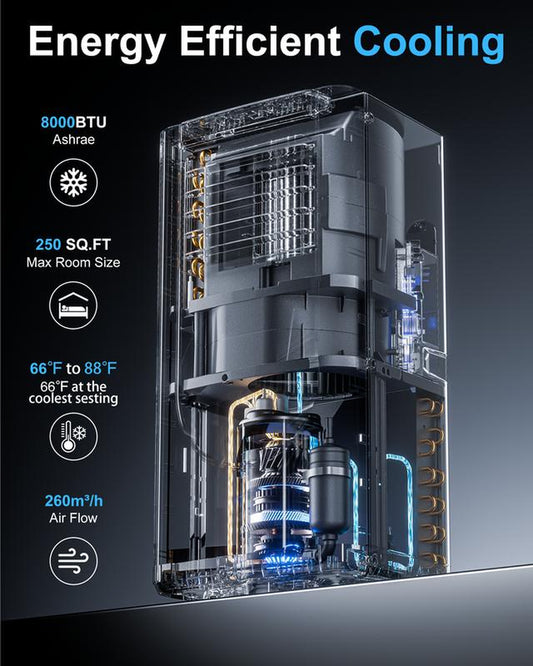Portable Air Conditioner 8000 BTU ASHARE(5000 BTU SACC), Portable AC Cool Rooms up to 250 Sq.Ft, 3-In-1 AC Unit with Remote Control&24H Timer, Window Kit Included Air Conditioner